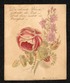 "[Besuchskarte 'Blumenstrauß' im Papierprägdruck in Biskuitmanier; ohne Text]." Ohne Verlag und Nummerierung (um 1820). 6 x 8,2 cm. Geprägter Blumenstrauß in Schale v. Hand koloriert, in schlichtem gepr. Rahmen. Papierbedingt etw. gebräunt, mit ca. 2,5 cm breitem Einriss u. Knickspur, mit Namenszug von alter Hand. Mit fein koloriertem Blumenstrauß und im unteren Rand mit Raum für die handschriftliche Eintragung des Namens. |
